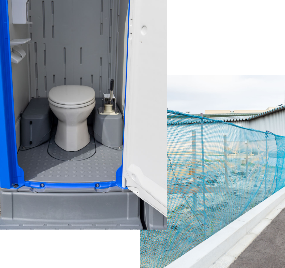 当社では現場を展示場と考え、仮設トイレをはじめガードフェンスや工事看板、保安BOX、プラシキ、階段ハシゴなど快適な現場づくりに欠かせない設備を総合サポートしています。